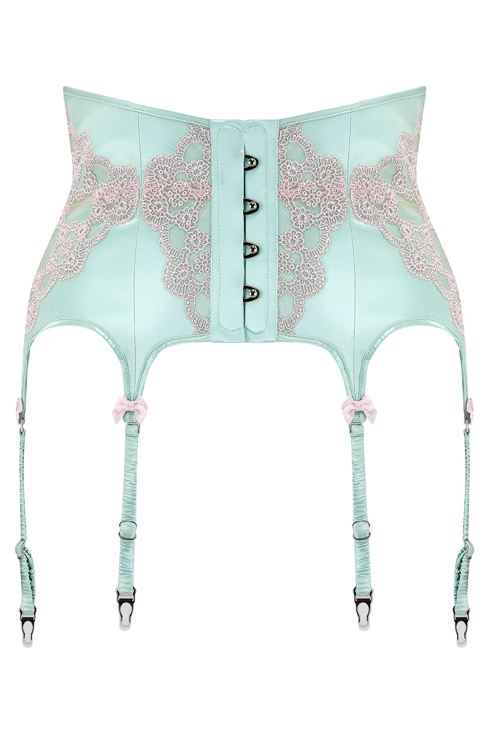 Beschönigen Sie Ihre Kurven nicht – feiern Sie sie in unserem köstlichen Misses Macaron Waspie. Mit einer atemberaubenden, figurbetonten Vorderseite und einer verstellbaren Seidenschnürung auf der Rückseite passt sich dieses seidige Kleidungsstück Ihrem Körper an und betont jede üppige Kurve. Mit erdbeerrosa Schleifen, mintfarbenen, gerüschten Strumpfhaltern aus Seide und süßer Stickerei werden Sie wahrlich der einzige Hingucker am Tisch sein.