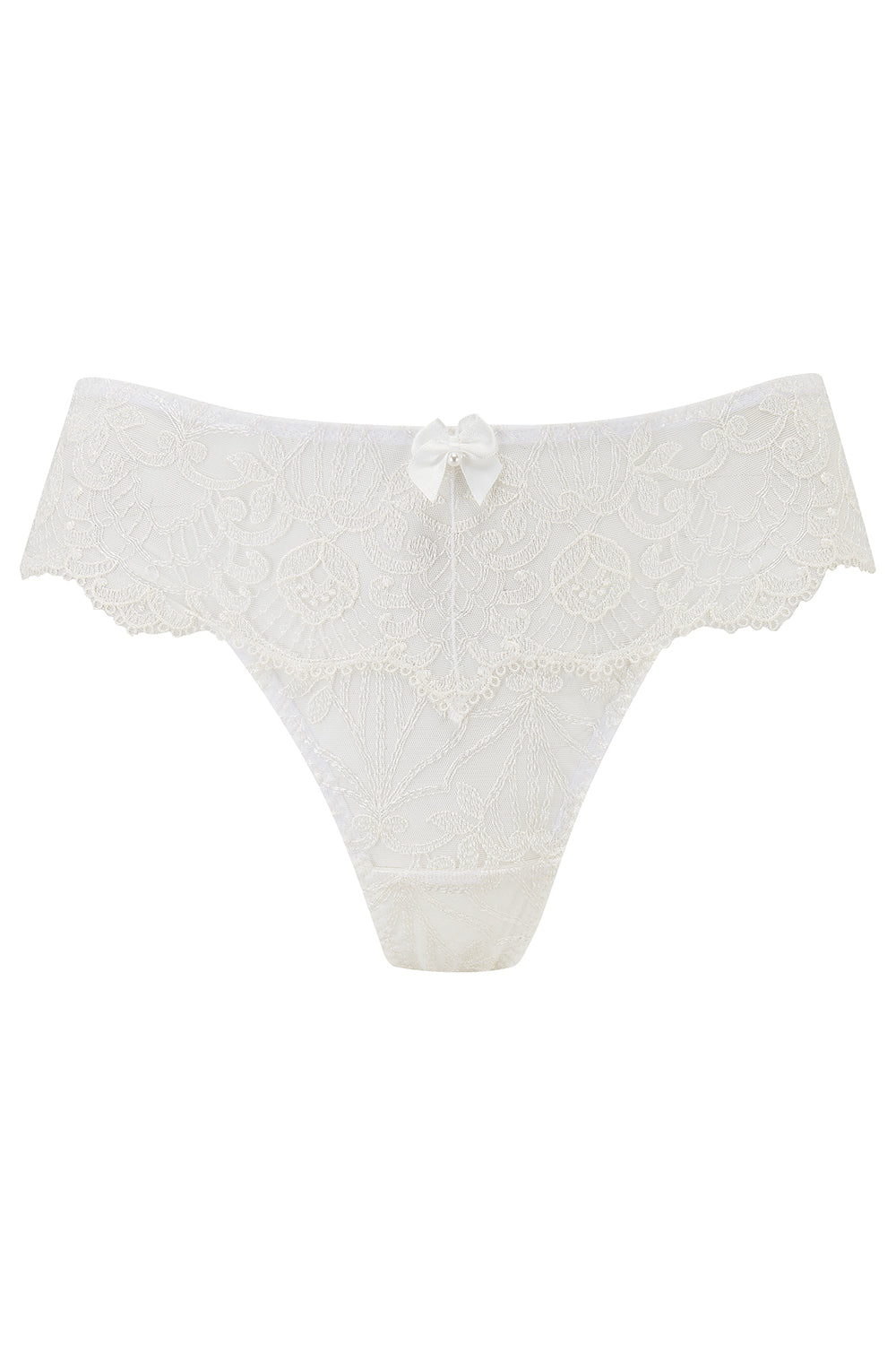 Soft yet seductive, the ‘Lovebirds Panty’ is made from barely-there French lace and cut to reveal the beauty of your skin. The extended waistband offers added coverage where it matters most, whilst the cotton gusset promotes all-day comfort. Playful satin and pearl bow embellishments are sure to capture the eye of your special someone.
